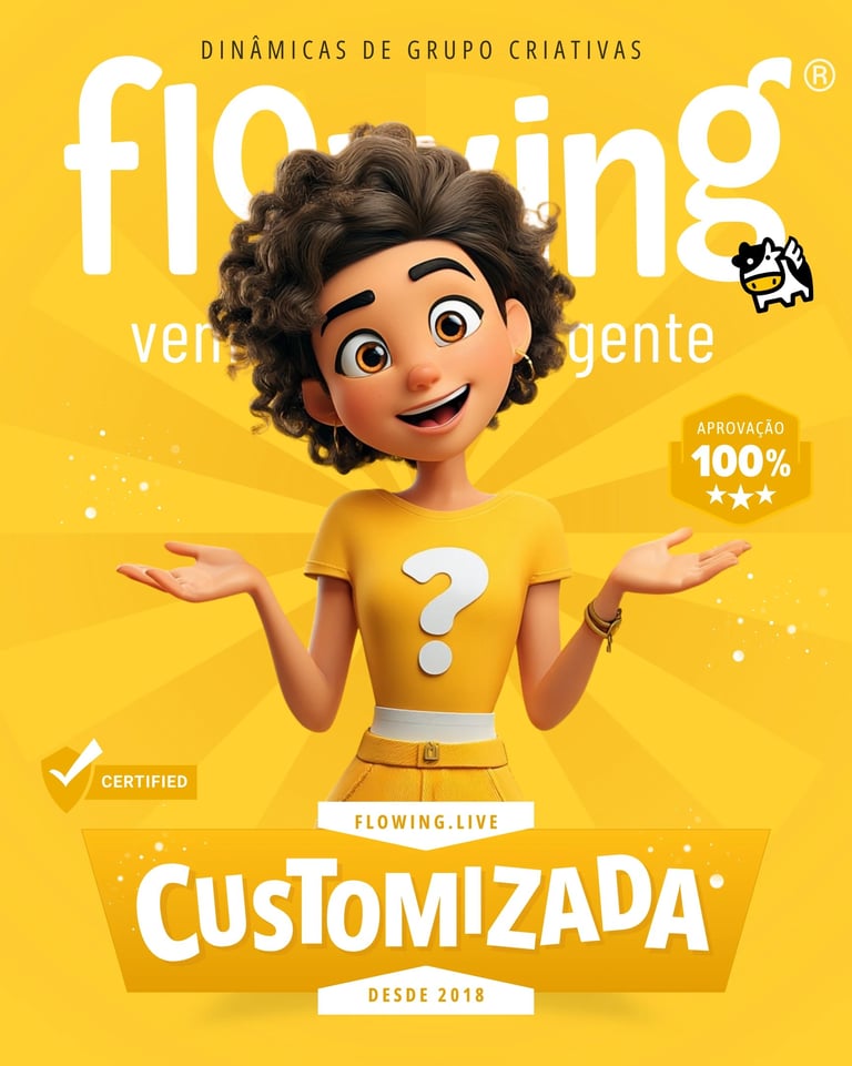 As dinâmicas customizadas da Flowing permitem criar experiências únicas, desenvolvidas do zero para refletir o tema, os valores e os objetivos da sua empresa. Cada detalhe — do conteúdo ao material com sua marca — é adaptado para gerar engajamento real e resultados alinhados ao propósito do evento.