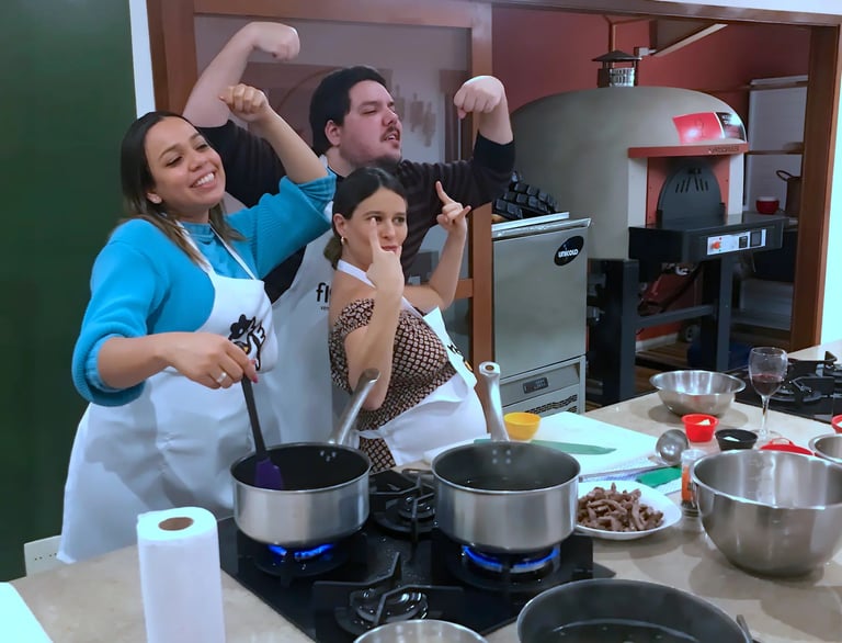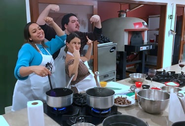 O grupo é desafiado a criar um prato de maneiras variadas, usando ingredientes surpresa, harmonizando sabores sem seguir uma receita ou experimentando técnicas diferenciadas que tornam a experiência envolvente e surpreendente.