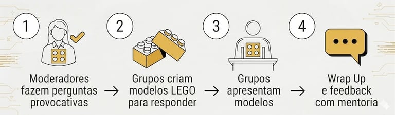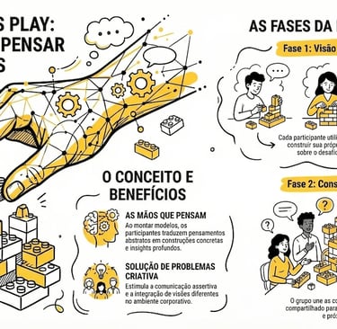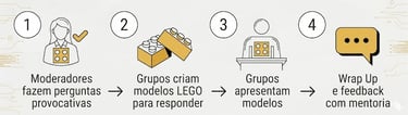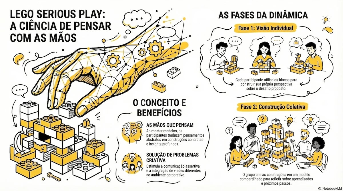 Parte da ideia de que as mãos também pensam. Ao montar modelos com LEGO, as pessoas traduzem ideias complexas, integram visões diferentes e descobrem novos insights.