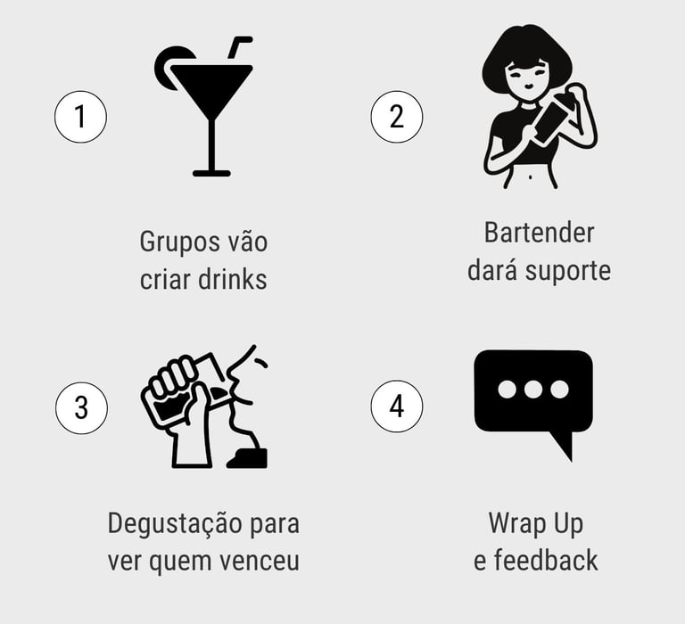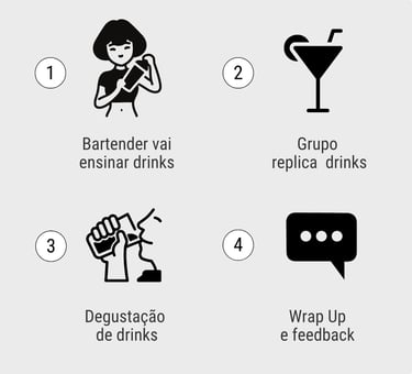 O grupo é introduzido a técnicas de mixologia, aprendendo sobre ingredientes, combinações de sabores e truques de preparo.