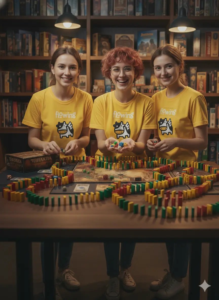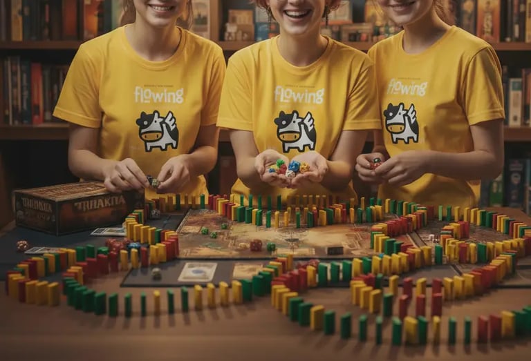 Uma atividade colaborativa em que grupos constroem, com peças de dominó, um circuito único e interligado. Cada equipe desenvolve um trecho temático que se conecta ao seguinte, exigindo coordenação, planejamento e cooperação.